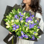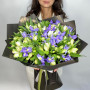 На фото мужской букет с ирисами и альстромерией. В составе: ирис 19 шт, альстромерия 20 шт, дизайнерская упаковка 2 шт, атласная лента 1 шт, . Все цветы свежие и ароматные, букет красиво оформлен и отлично подходит для подарка. Доступна доставка цветов или самовывоз.